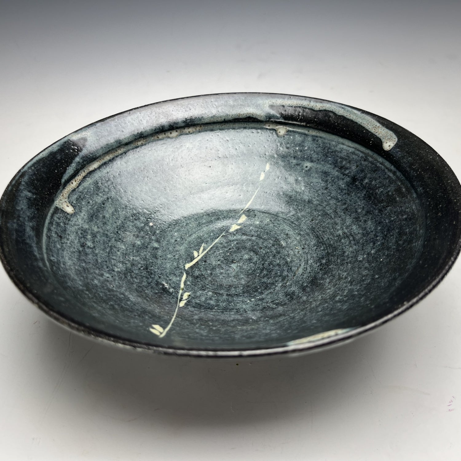 This piece is made with stoneware, hardwood ash glaze, broken branch motif.