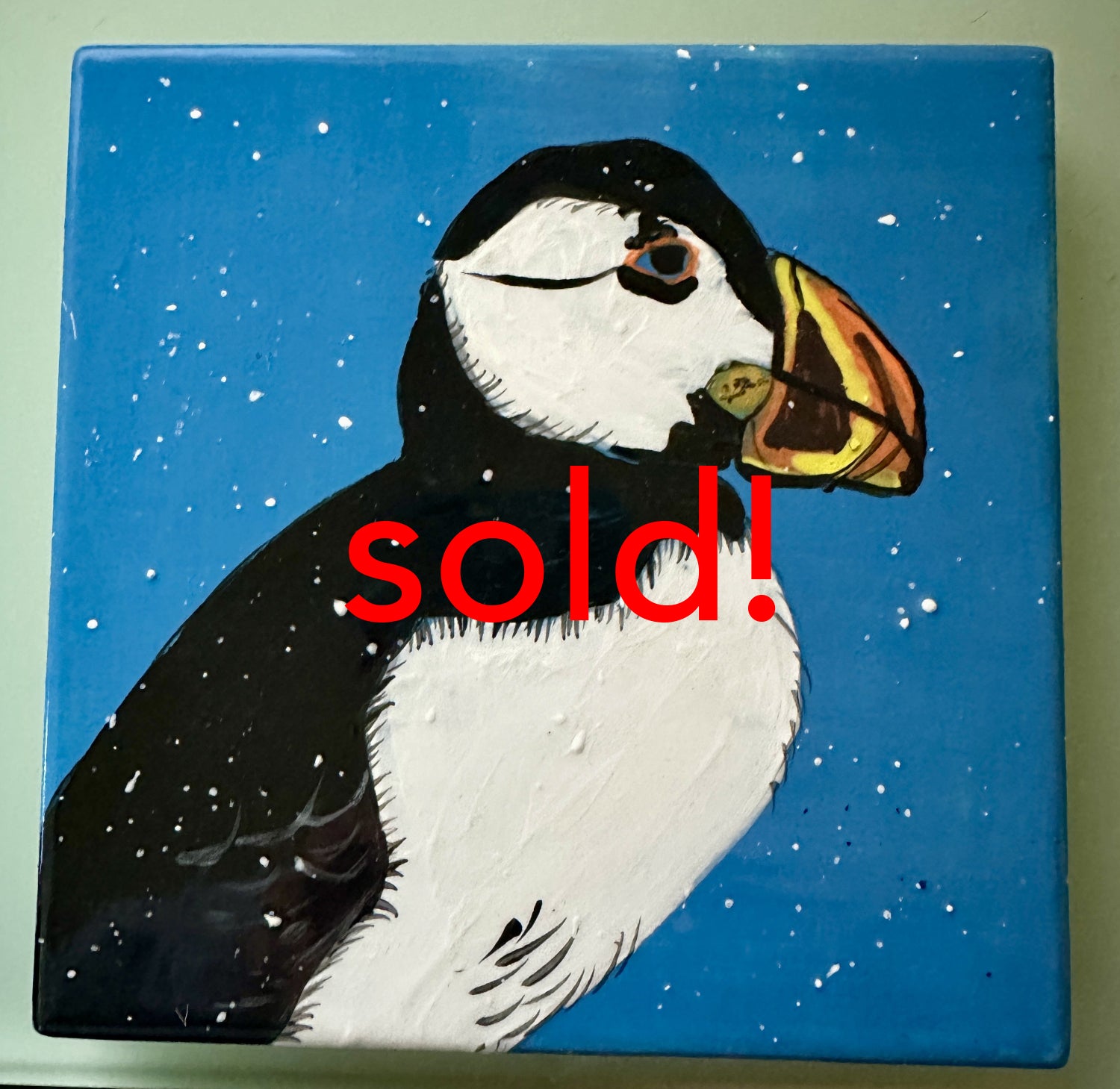 This piece is made with earthenware, underglaze and gloss glaze ceramic tile.