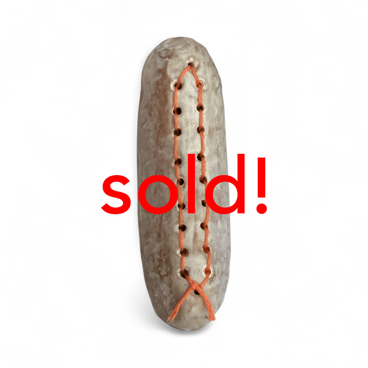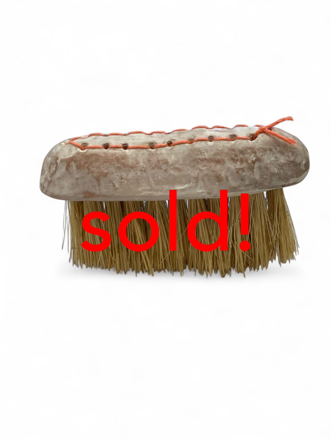 This piece is a hand brush made of stoneware, Tampico, and waxed linen